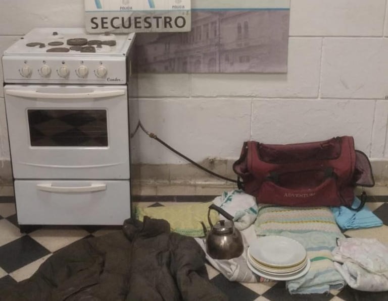 Personal Policial de la Comisaría Primera de Tres Arroyos, procedió este sábado, siendo las 23.50 horas, en calle Buchardo al 500 a a la aprehensión de DOS MASCULINOS (27) Y (32) quienes llevaban consigo los siguientes elementos (07) platos, (03) toallas, (04) sabanas, (01) pava, (01) paquete de yerba vea, (01) rollo de cocina, (08) hornallas de cocina (01) campera (01) bolso bordo, y (01) cocina. , los cuales hubiesen sido sustraídos del domicilio de Colon Nro. 1558.